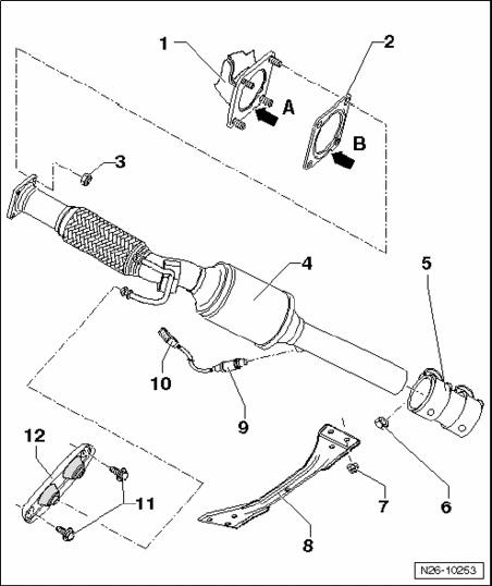 Front Exhaust Pipe With Catalytic Converter And Attachments (Engine Code: BGP), Assembly Overview