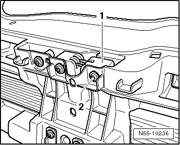- If screws - 2 - are loosened from hood lock - 1 -, height of hood to radiator grille can be correctly slightly.