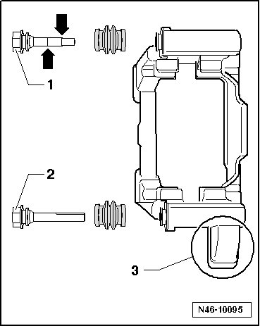 • Before removing brake caliper or disconnecting brake hose, brake pedal actuator (V.A.G 1869/2) must be inserted (this dissipates pressure).
