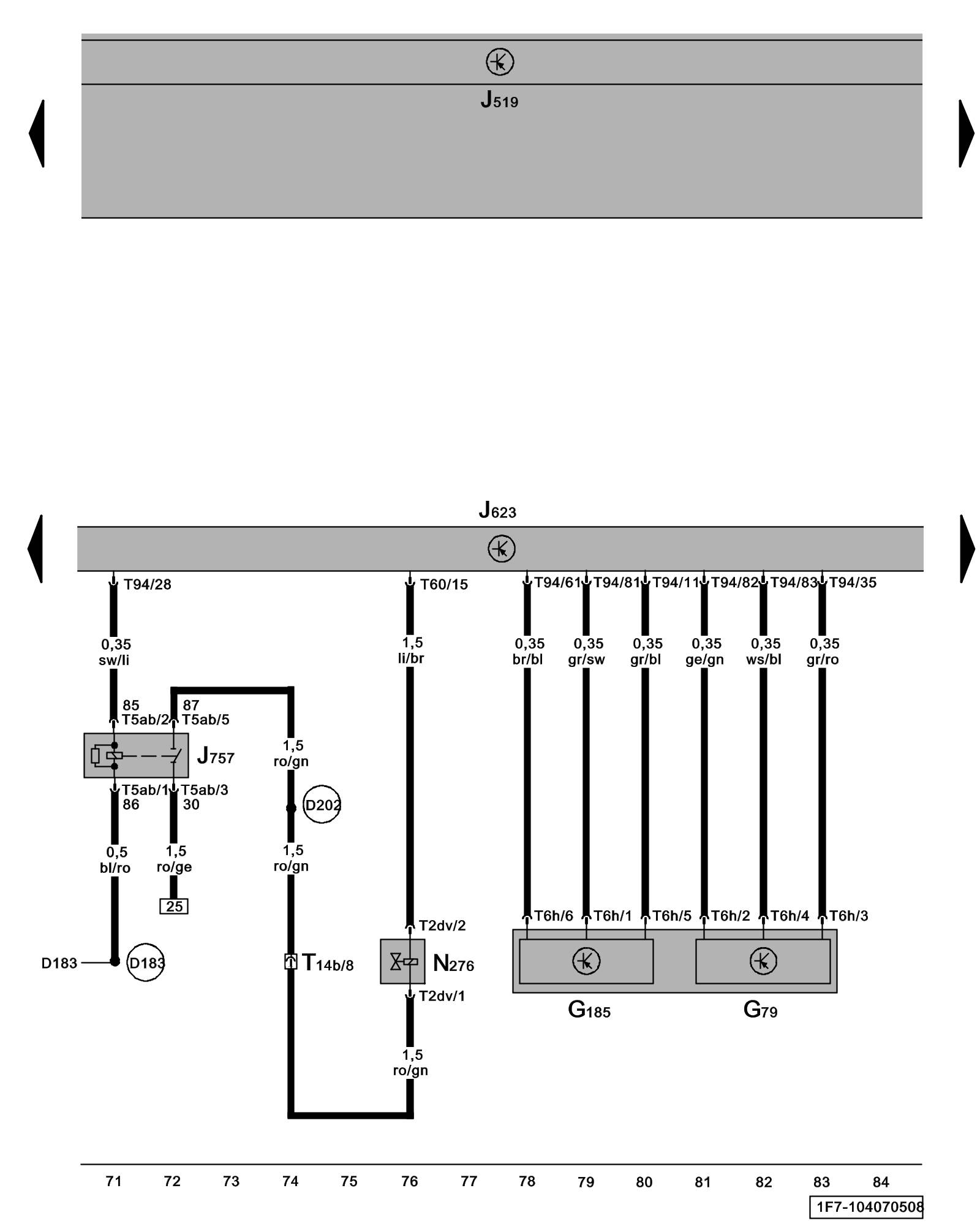 (D183) - Connection 4 (87a) (in engine compartment wiring harness)