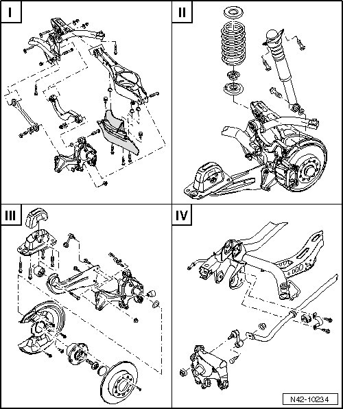 III - Refer to => [ Wheel Bearing Housing and Trailing Arm Assembly Overview ] Wheel Bearing Housing and Trailing Arm Assembly Overview.