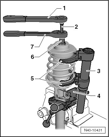 - Remove individual components of suspension strut and coil spring with (V.A.G 1752/1).