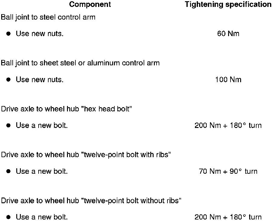 The drive axle bolt may be loosened maximum 90° when the vehicle is standing on its wheels.