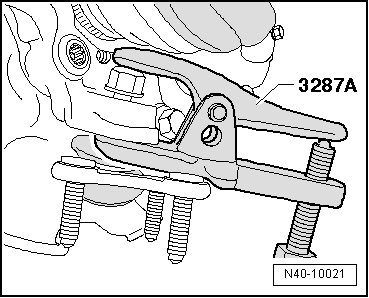 - Attach (3287 A) as shown in the illustration and press out ball joint.