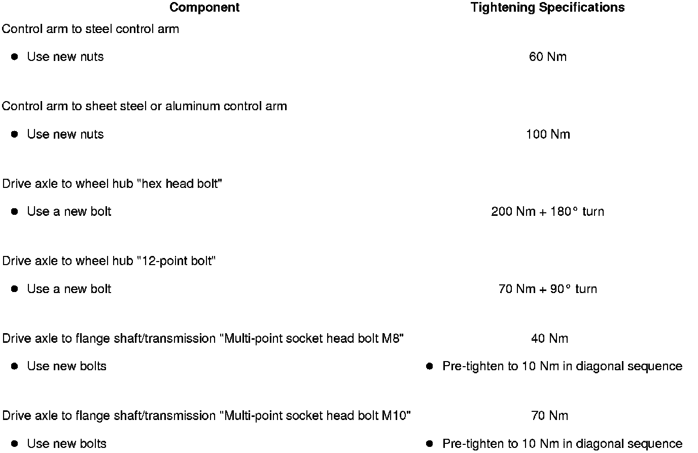 - Install inner joint of drive axle and initially tighten bolts diagonally to 10 Nm.