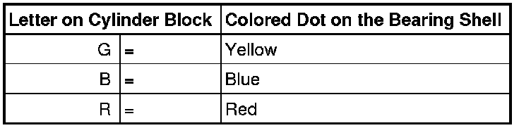 The letters marked on the lower sealing surface of the cylinder block identify which bearing thickness must be installed in which location