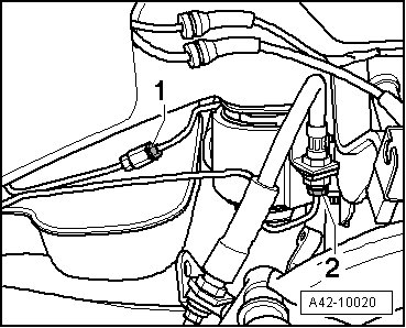 - Disconnect the brake lines - 1 and 2 -.