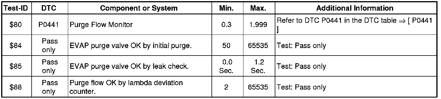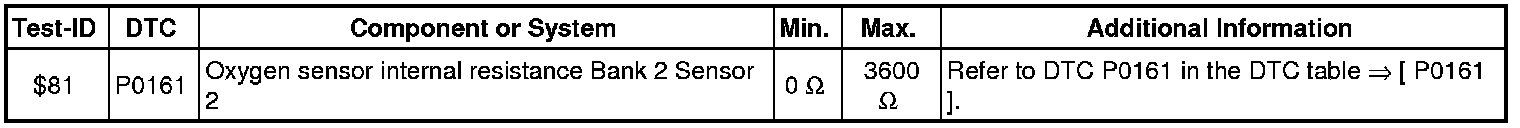 - If any of components or systems fail to meet the specified values. Refer to Diagnostic "Mode 03: Interrogating Fault Memory" to check for stored DTC's or the corresponding diagnostic repair procedure => [ Diagnostic Mode 03 - Read DTC Memory ]Diagnostic Mode 03 - Read DTC Memory.