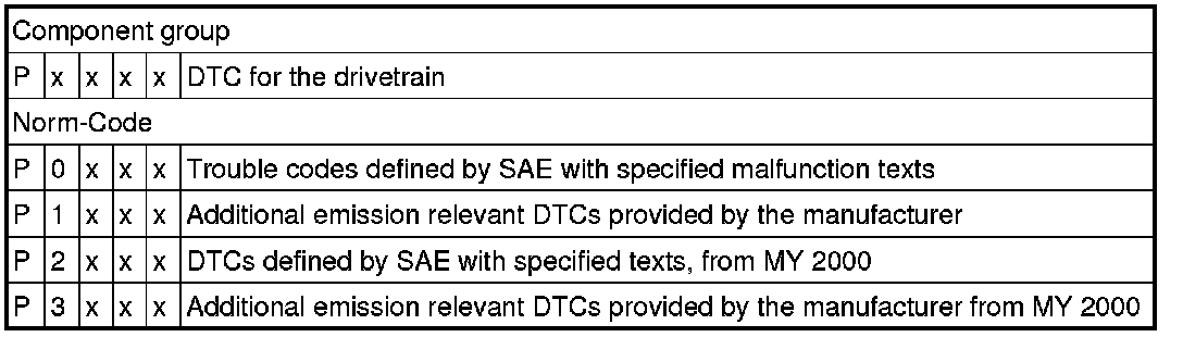 The DTCs are sorted by SAE code with the DTC tables consisting of a 5 digit alpha numeric value.