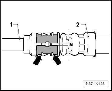 The clip must be seated completely in the groove on the coupling - 2 - and the connection - 1 -. Dimension - a - should be a maximum of 5 mm.