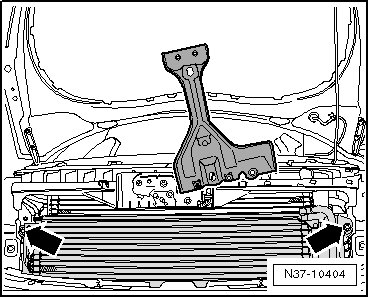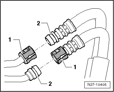• The supply and return lines are connected to the transmission fluid cooler with a "quick release coupling" - arrow - and secured with a clip.