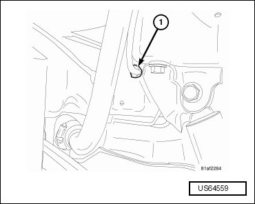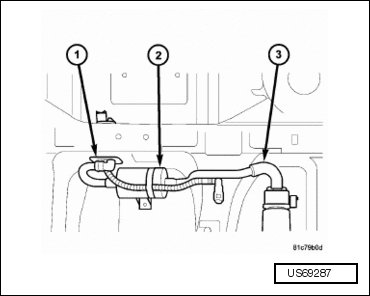 - Remove the EVAP canister filter (2) from the frame rail (1).