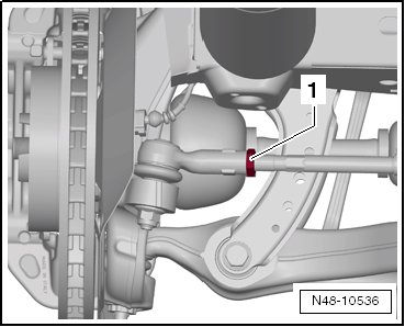 - Tighten the lock nut - 1 - with (V.A.G 1332/11) while counterholding at the wrench surface of the tie rod end.