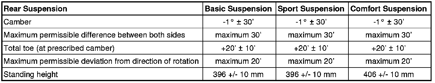 Wheel Alignment Specified Values, Vehicles with Torsion Beam Rear Suspension