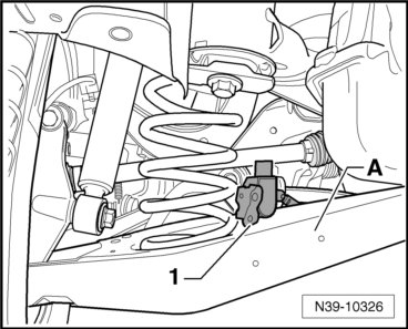 - Disconnect the harness connector, remove the sensor - 1 - and lay it on the control arm - A -.