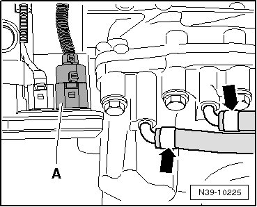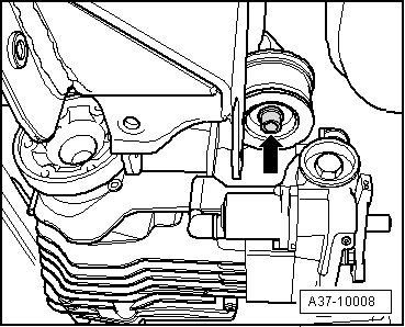 - Press the engine and transmission forward by hand and secure this position with a suitable piece of wood - A -.
