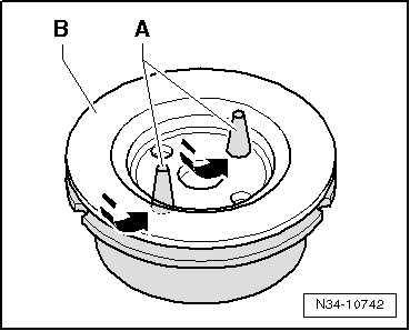 - Remove the right drive axle - B - from the flange and carefully lower it.