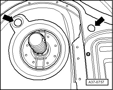 - Remove the rubber plugs - arrows - from the luggage compartment floor.