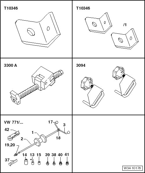 • Transmission support elements (determine when mounting the adjustment plate on the transmission support )