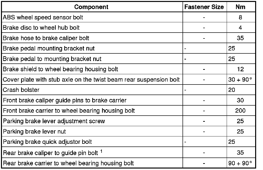 Brake System - Mechanical Components - Fastener Tightening Specifications