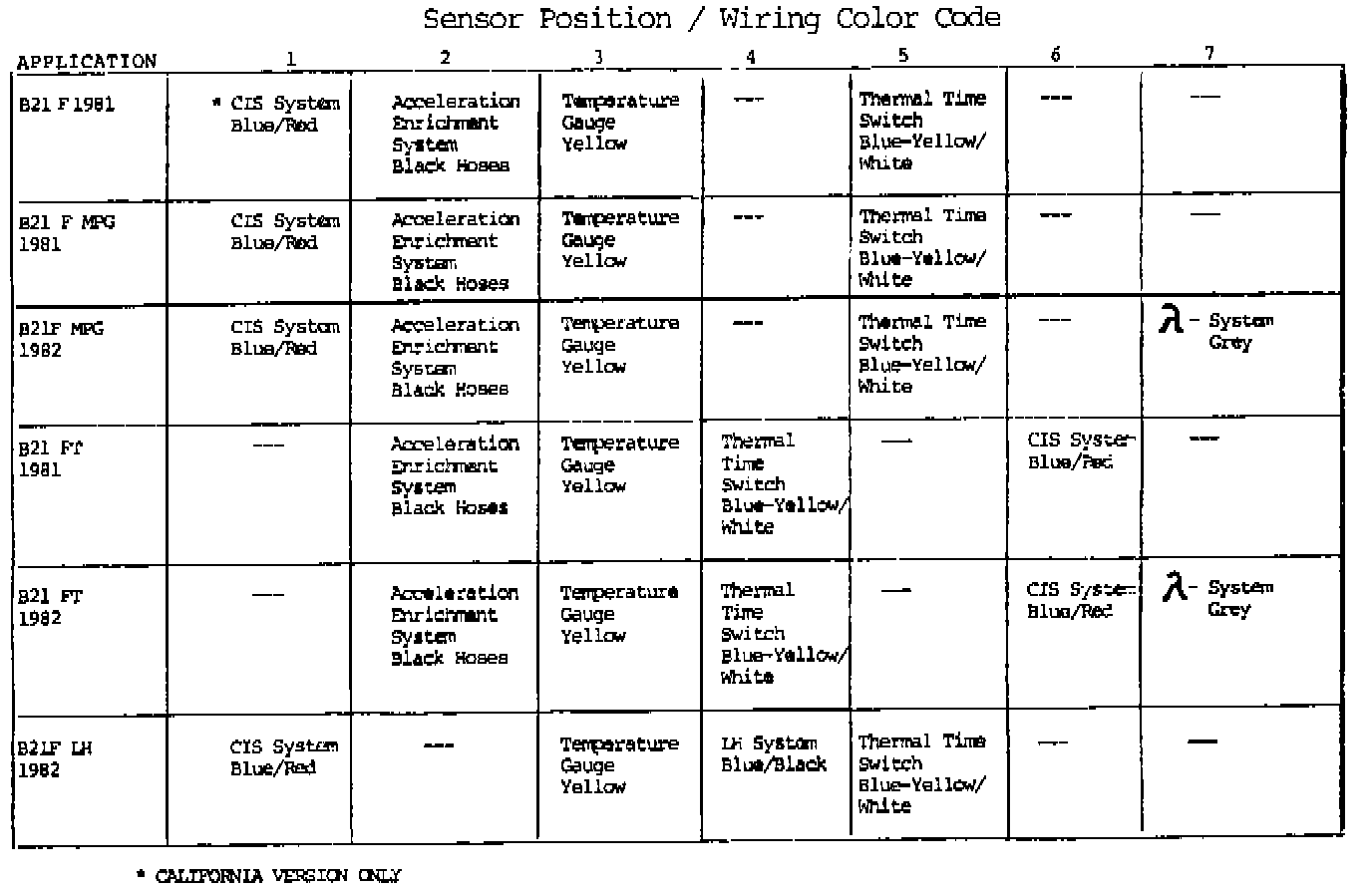 Make sure that the wires for the cold start injector (Blue-Yellow/White) and the wires for the temperature sensors for the CIS and/or LH Systems are installed correctly. They have identical connectors and can be mixed.