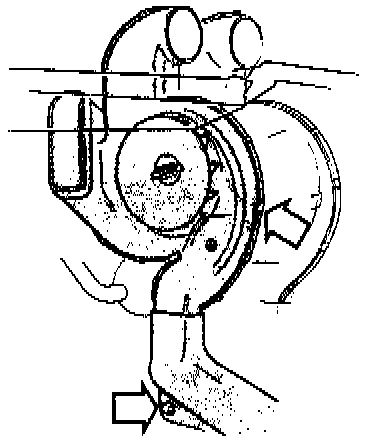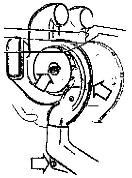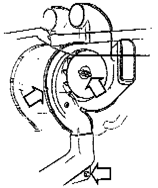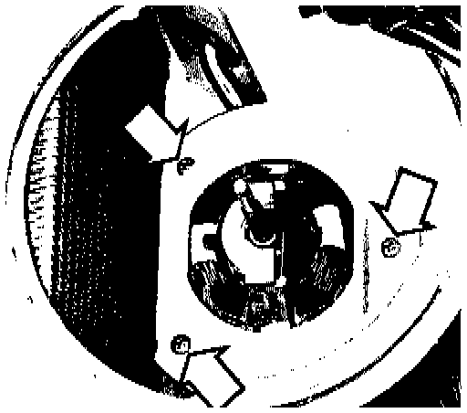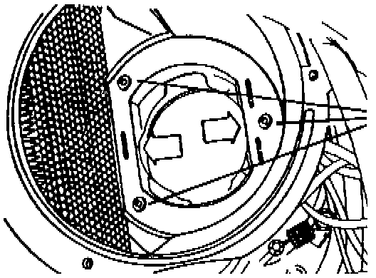 1. File or grind inner sides of heater housing (arrows) to obtain correct fit of new blower motor. Grind only enough material to allow new blower motor to fit properly.