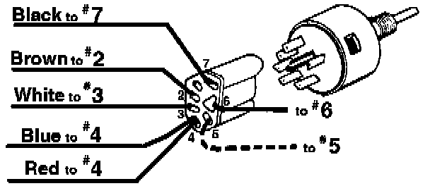 4. Install the white-black wire which was previously located in pin #3 of the old fan switch plug into pin #6 of the new switch plug. Refer to schematic.