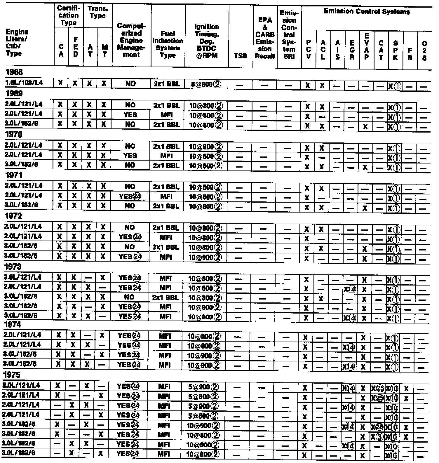 Emission System Application Chart