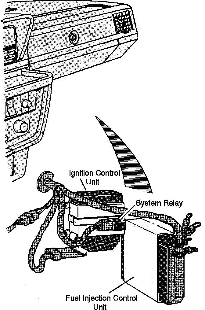 The fuel injection control unit is located behind the panel in front of the right door pillar.