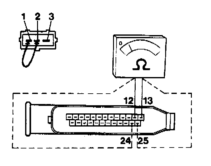 Measure resistance between terminals 12 (black) and 13 (grey), and between terminals 24 (brown) and 25 (green) in control unit connector.