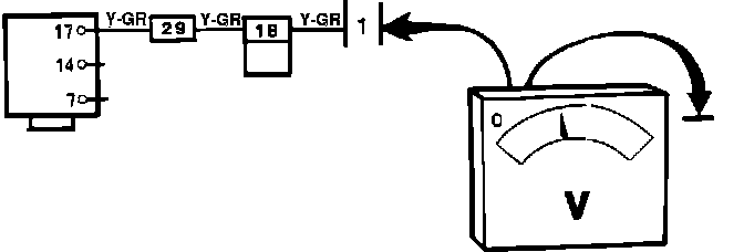 If needle does not deflect, check wire and connectors between fuel injection and ignition ECU. Repair as necessary. If wire is O.K., fault lies in ignition ECU or crankshaft position/speed sensor (see ELECTRONIC CONTROL UNIT or CRANKSHAFT POSITION/SPEED SENSOR).