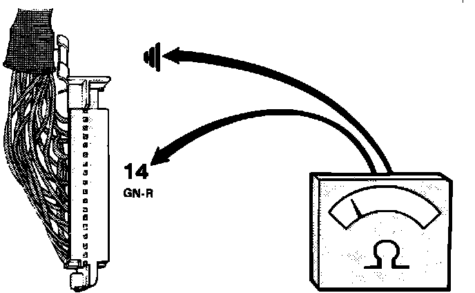 6. Connect an ohmmeter between pin 14 at ECU connector and ground.