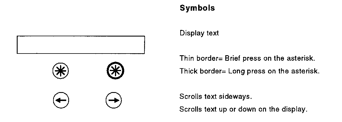 The figure below shows the Volvo Diagnostic Key ST display text when fault tracing in the MFI LH 2.4/LH 3.1 and DI EZ 116 K systems. The symbols show how to press the buttons to access the various texts. Steps CA2-CA5 show how the Diagnostic Key ST is used for Test Modes (DTMs) 1-3.