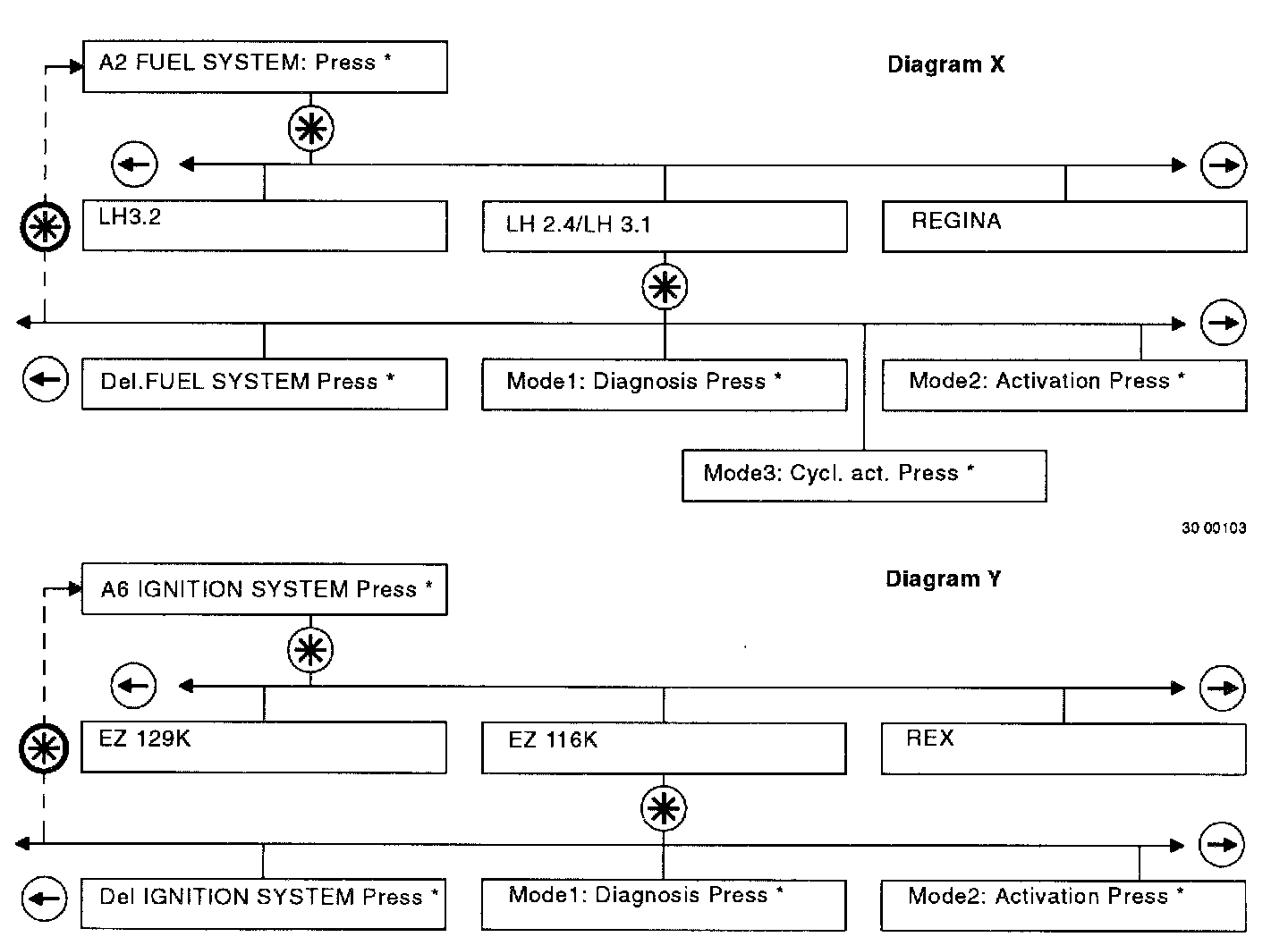 Search for the text "Mode 1: Diagnosis Press * "in diagrams X or Y.