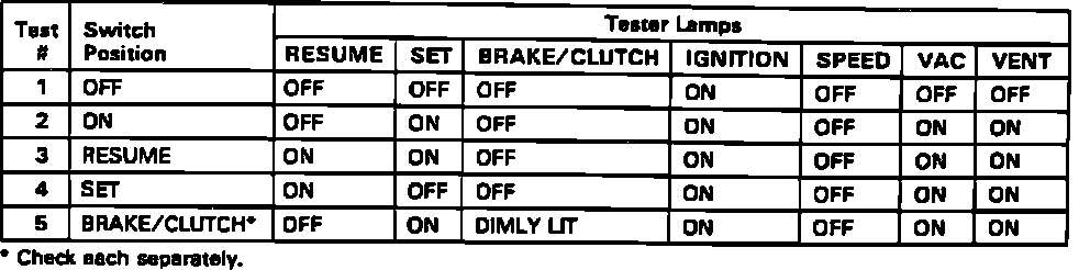 b. For ``Resume and Set'' lamps, check yellow and green wires between control unit and switch, Fig. 3. If not satisfactory, locate and repair open circuit in wires. If satisfactory, replace switch.