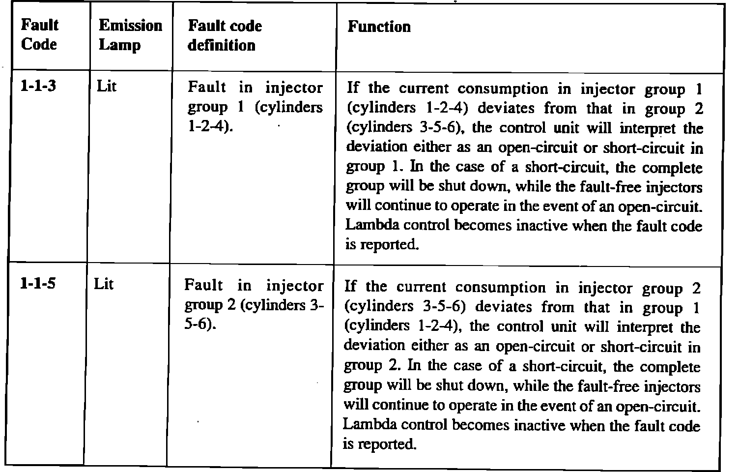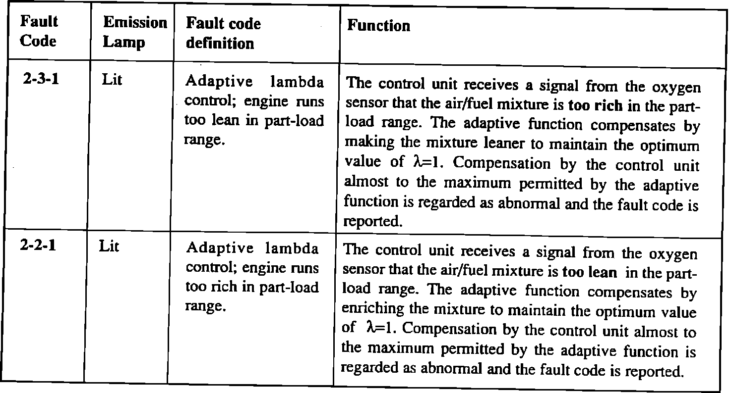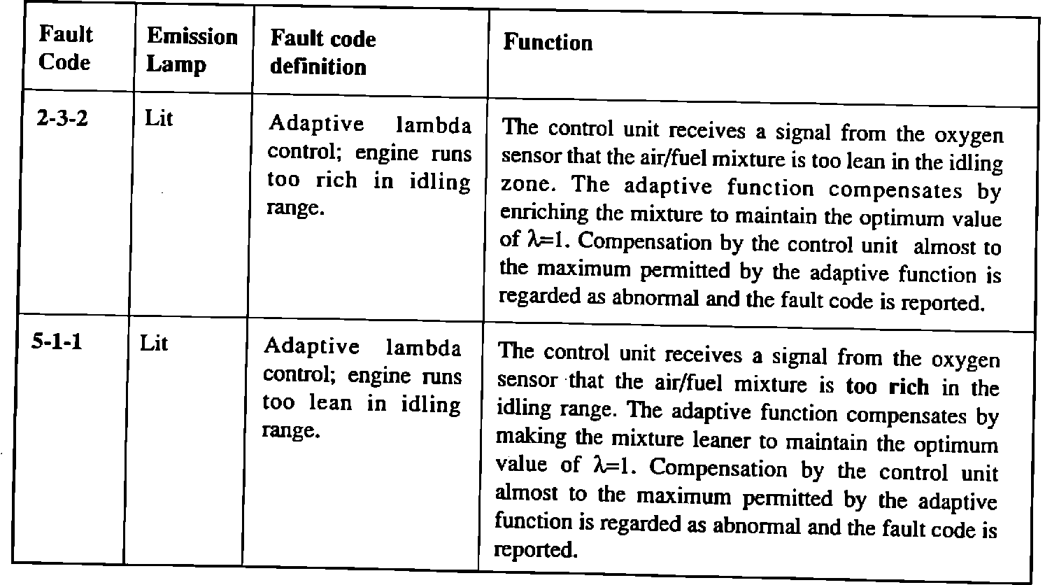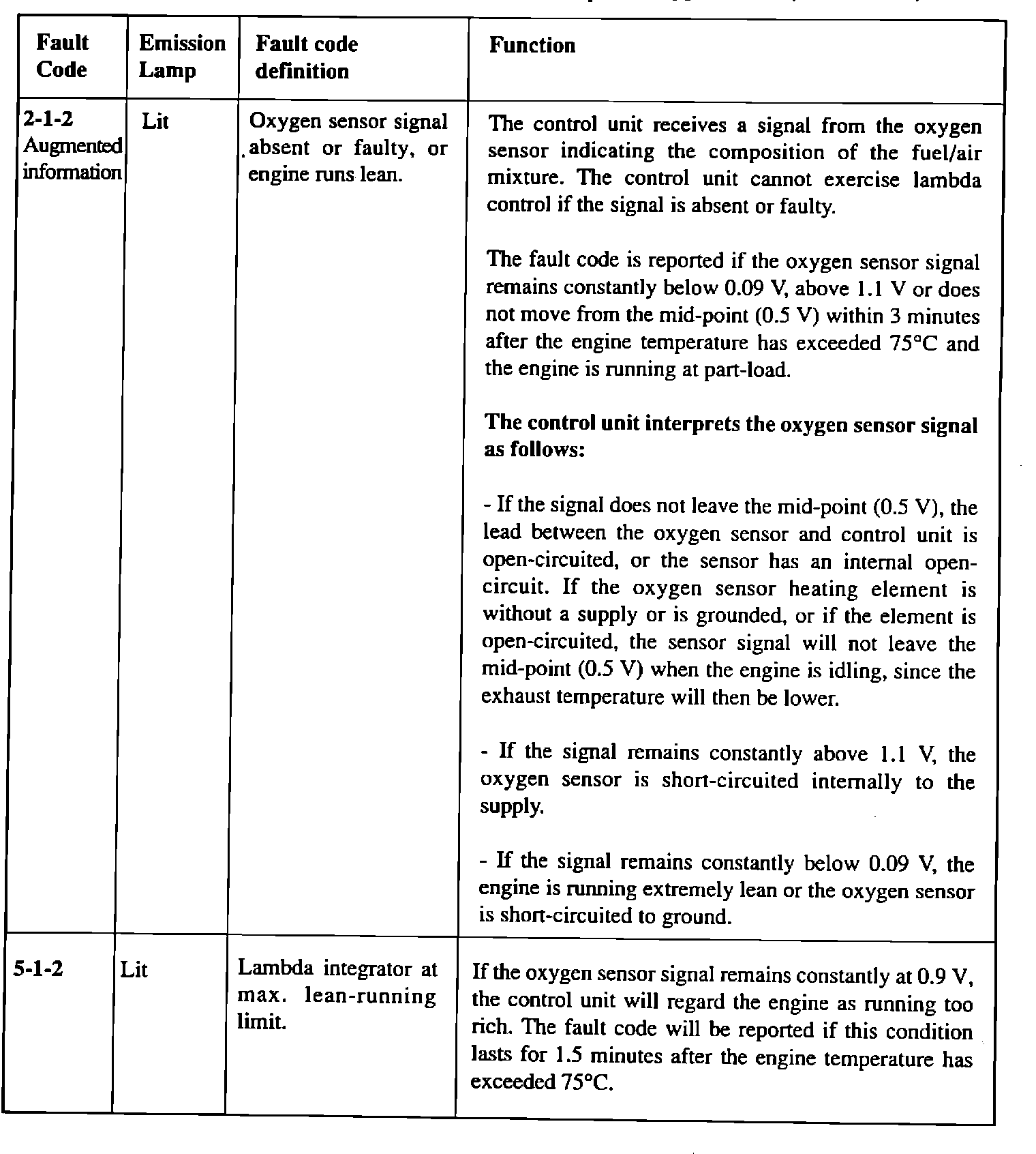 Fault codes when control unit does not sense reversal of signal from oxygen sensor (Lambdasond)