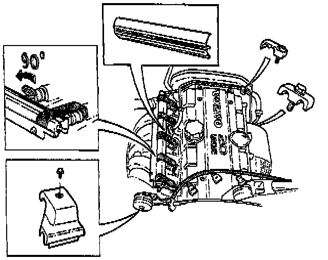 - Move aside shroud, lift relay shelf, open fan connectors and disconnect hoses to EGR controller at intake manifold and EGR valve.