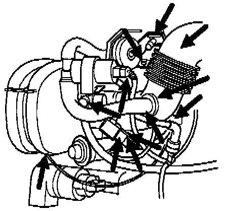 - Intake manifold, by lifting slightly (approx. 20 mm) to free from engine.