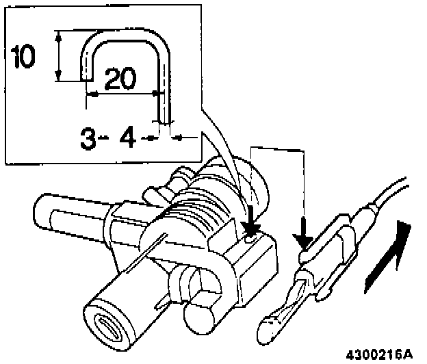 Make up suitable 'tool' by bending a 3-4 mm dia. (0.19-0.16 in.) wire. Press in upper locking tab and withdraw cable.