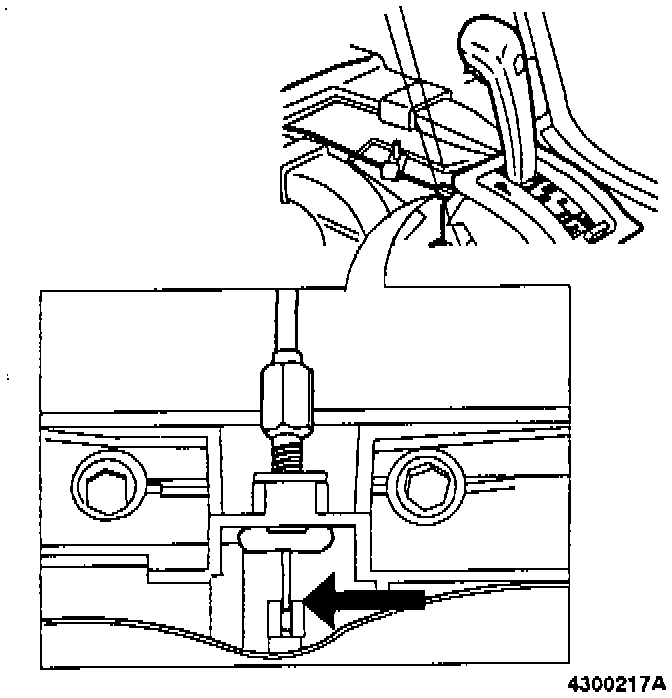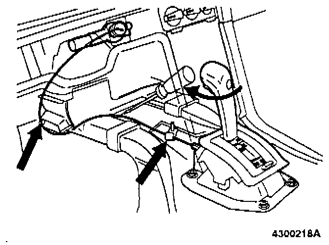 Move gear lever to position P. Check that clearance between cable and operating arm at gear lever end is approx. 0.5 mm (0.02 in.).