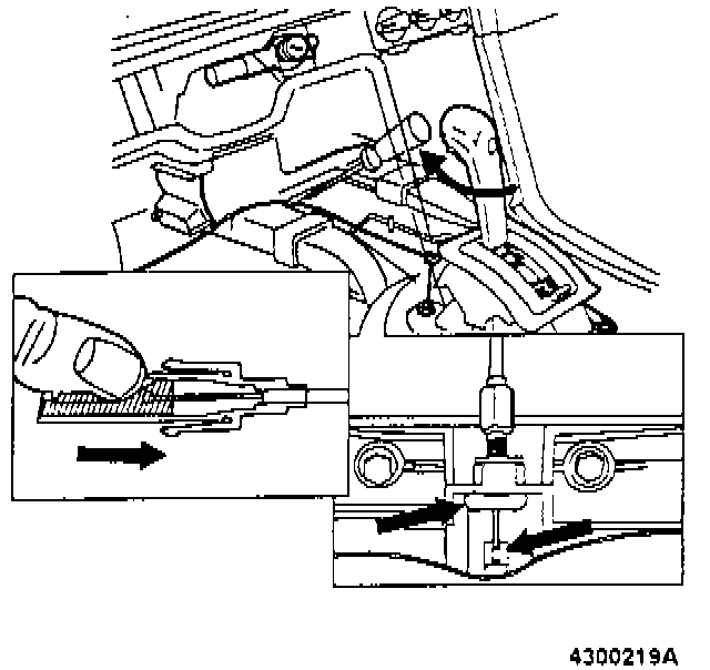 Remove cable adjuster locking clip at gear lever mechanism