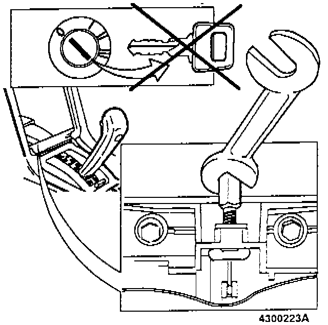 A latching segment is used to prevent movement of the gear selector lever from position P unless the ignition key is in position I or II. The key cannot be turned to position 0 and removed unless the lever is in the P position.