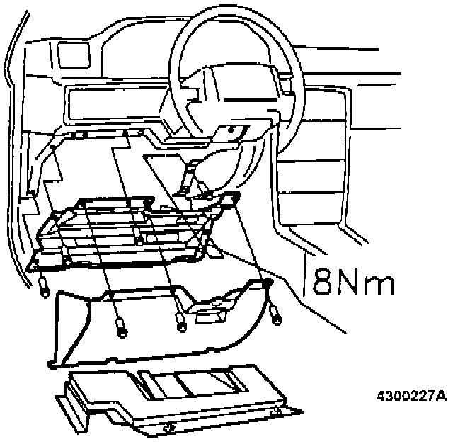 - knee bolster support plate. Tighten bolts to 8 Nm (6 ft lb).