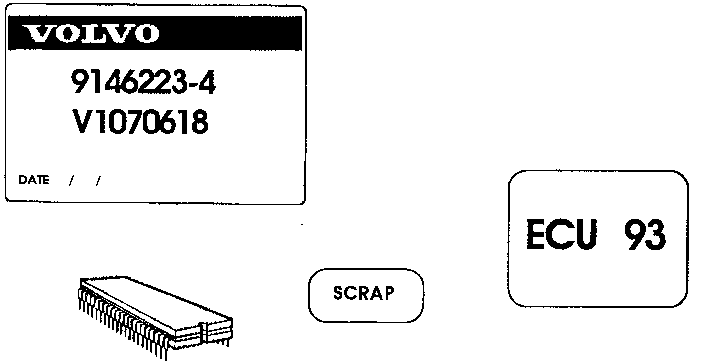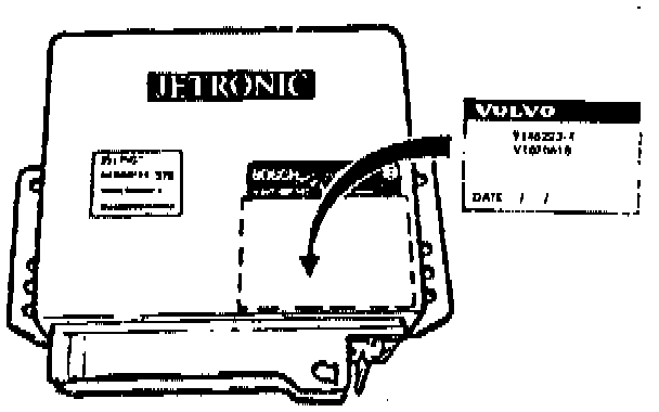 Place a new Volvo label with the proper control unit P/N over the old label. Leave part of the old label visible (10-digit Bosch number); however, cover the bar code. (See illustration)
