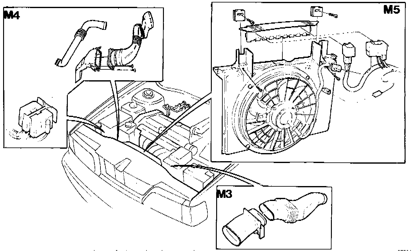 - Disconnect two-pin connector from fan relay and one-pin connector from fan motor.