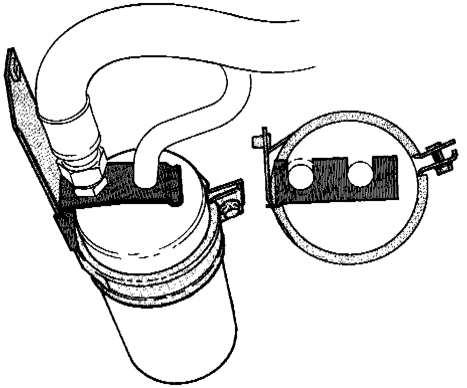 NOTE: Note hose position relative to receiver/dryer. Switch bracket. Use gauge 5473 to get right position.
