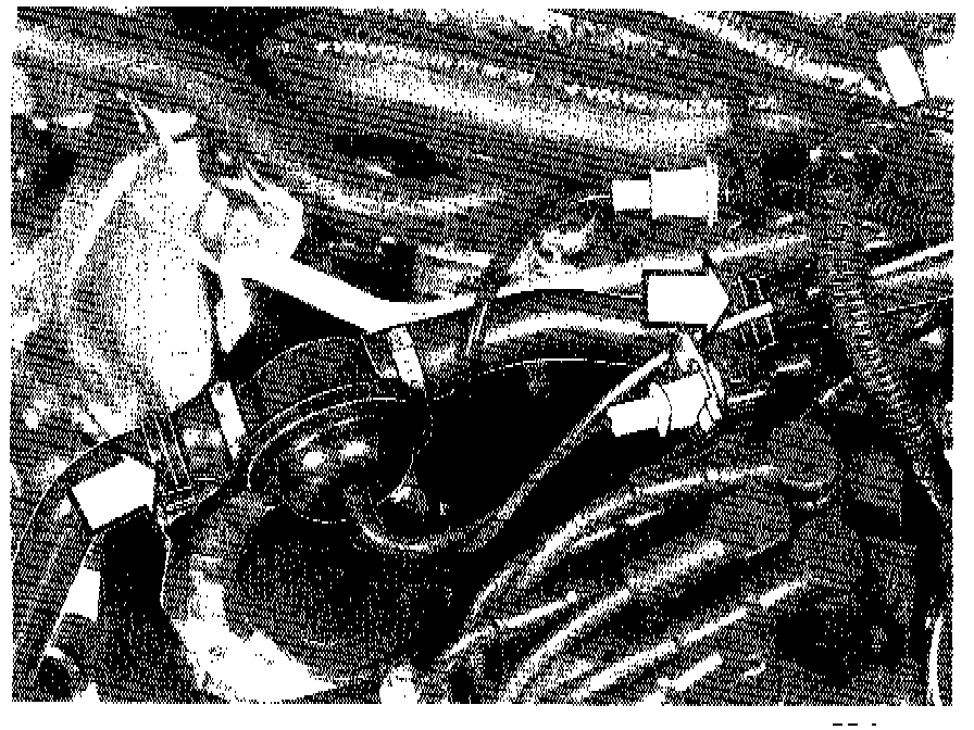 ^ Disconnect air hose and ground lead in the terminal under the left headlamp.