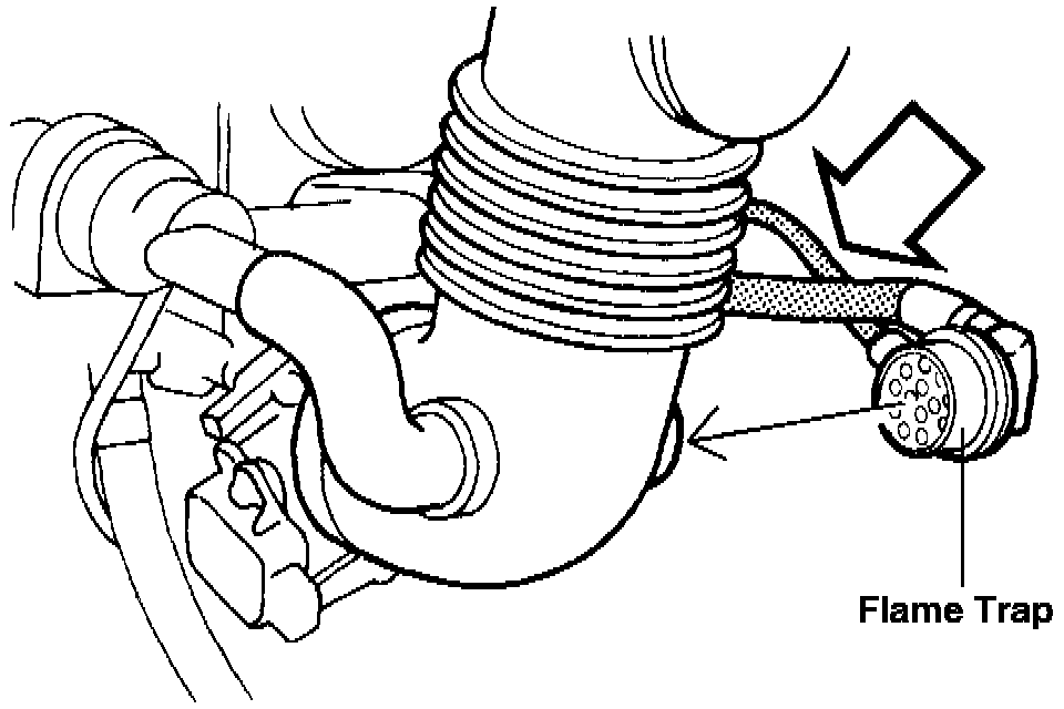 NOTE: Do not disconnect hoses from flame trap casing. Altering the position of hoses can affect the function of the throttle.