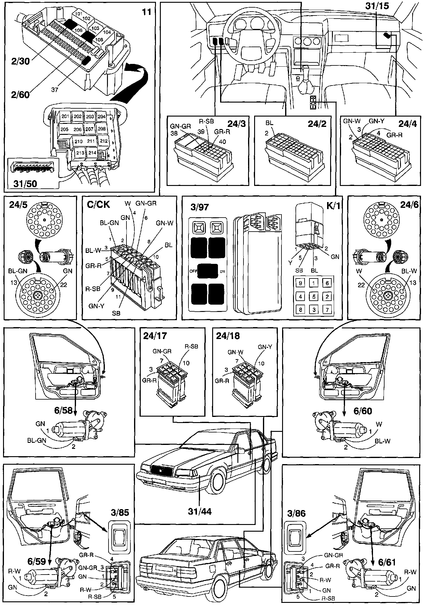 24/14 Connector, pos. 1-25 in 53-pole Engine compartment harness - Door sill harness, let
