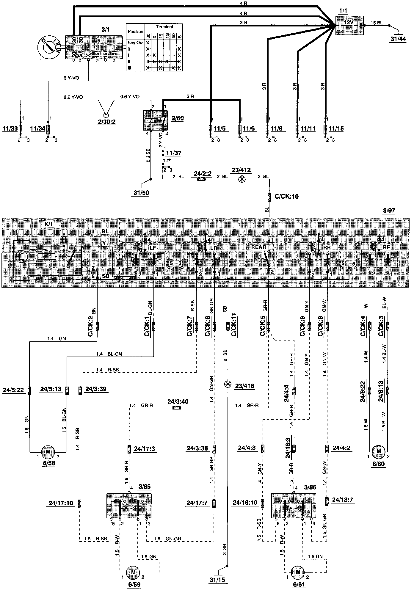 23/601 Branching point, tailgate/trunk, ground 31/11, trunk left side via 23/417